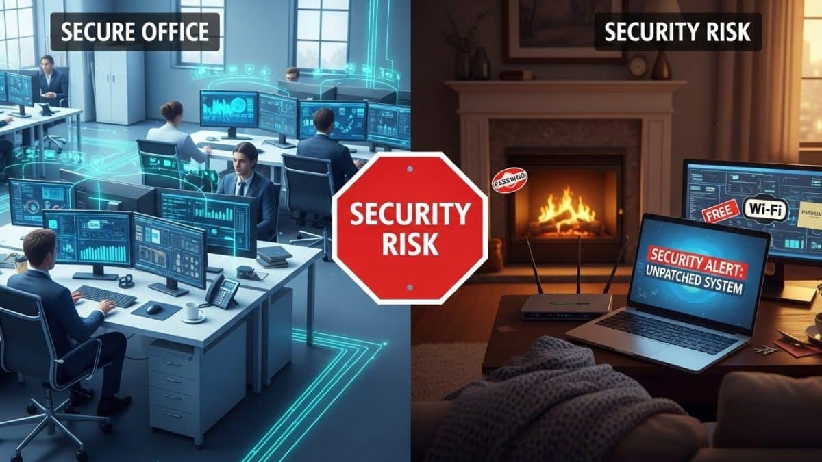 Many of these “Internet of Things” (IoT) devices have zero security. A hacker can compromise a cheap smart bulb, use it to gain a foothold in the home network, and then “hop” over to the work laptop that is sitting on the same Wi-Fi. In an office environment, we “Segment” these devices so they can’t talk to each other. In a home office, it’s usually one big, unsecure “party” on the network.