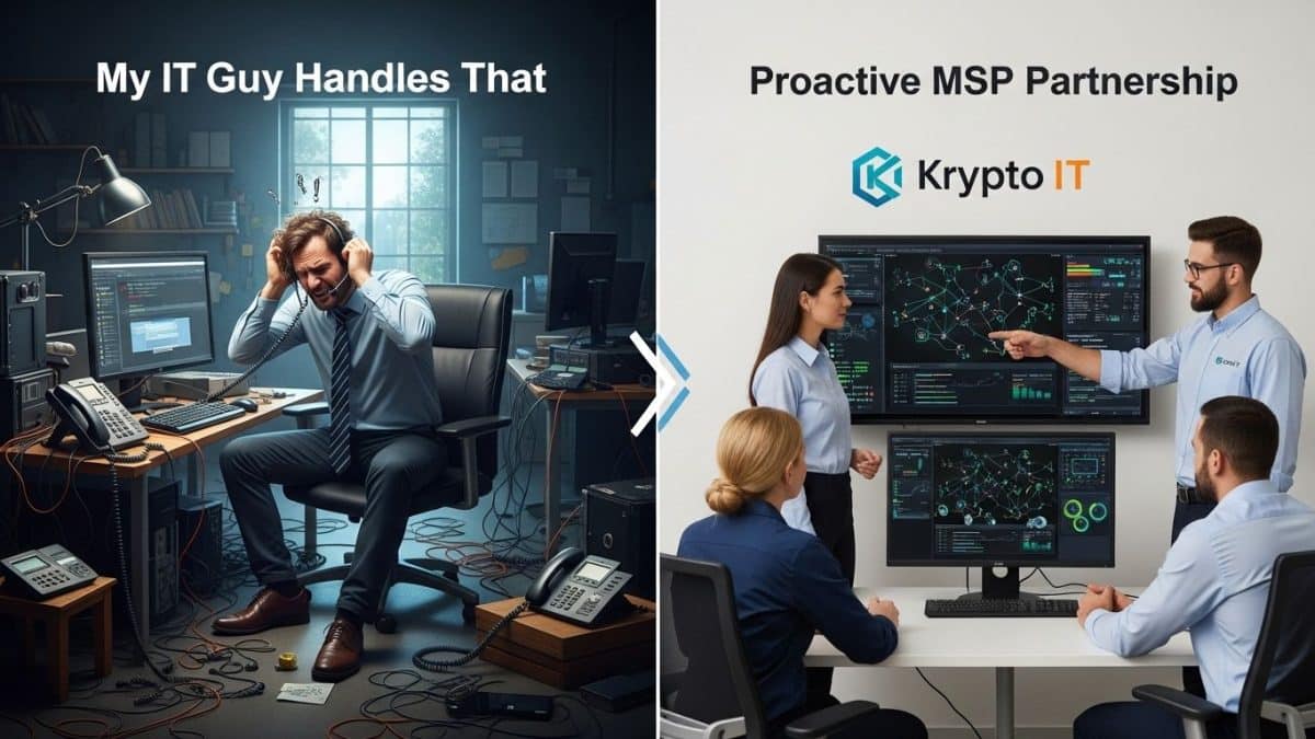 But in today’s complex digital world, relying on reactive, break-fix support is no longer enough. The difference between an “IT Guy” and a Managed Service Provider (MSP) like Krypto IT is the difference between having an ambulance on call versus having a proactive health and wellness plan. One reacts to a disaster; the other works 24/7 to prevent it.